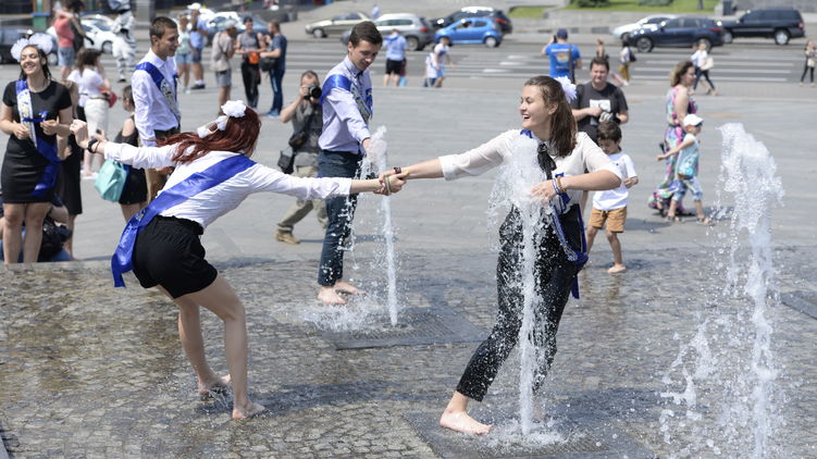 Также среди 11-классников популярно искупаться в фонтане на площади возле Дворца Спорта и ДК "Украина". Некоторые залезают в чашу с водой в Мариинском парке.