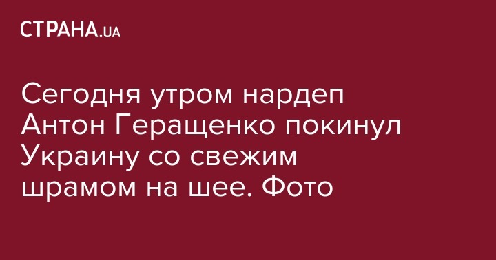 Сегодня утром нардеп Антон Геращенко покинул Украину со свежим шрамом на шее. Фото
