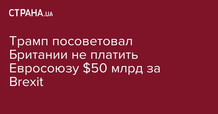Президент США Дональд Трамп посоветовал Великобритании не платить Евросоюзу штраф в размере 39 млрд фунтов (около 50 млрд долларов) за выход из ЕС. Об этом сообщает издание The Sunday Times.