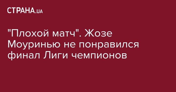 Бывший главный тренер Манчестер Юнайтед Жозе Моуринью поделился мнением о финале Лиги чемпионов, где Ливерпуль победил Тоттенхэм со счетом 2:0.