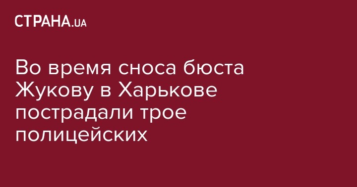 Во время сноса бюста маршалу Жукову в Харькове пострадали трое полицейских. Об этом сообщил отдел коммуникации ГУНП в Харьковской области.