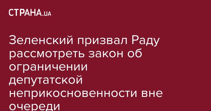 Зеленский призвал Раду рассмотреть закон об ограничении депутатской неприкосновенности вне очереди