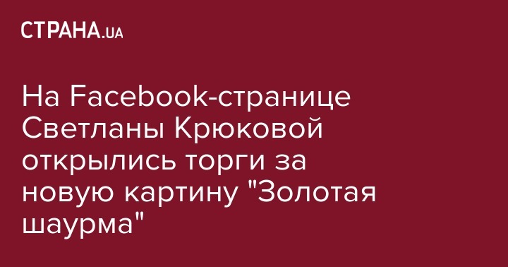 Замглавного редактора Страны Светлана Крюкова сегодня, 3 июня, объявила на своей странице в Facebook очередной аукцион для любителей искусства. На этот раз она продает картину под названием "Золотая шаурма", которая отсылает к известной фотографии президента Владимира Зеленского с шаурмой.