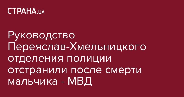 Руководство Переяслав-Хмельницкого подразделения полиции Киевской области отстранили от выполнения служебных обязанностей в связи со смертью 5-летнего ребенка, которого ранили полицейские. Об этом сообщает пресс-служба МВД Украины.