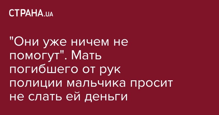 "Они уже ничем не помогут". Мать погибшего от рук полиции мальчика просит не слать ей деньги