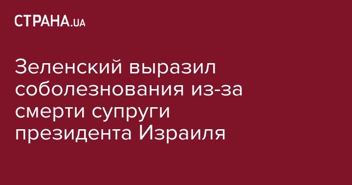 Зеленский выразил соболезнования из-за смерти супруги президента Израиля