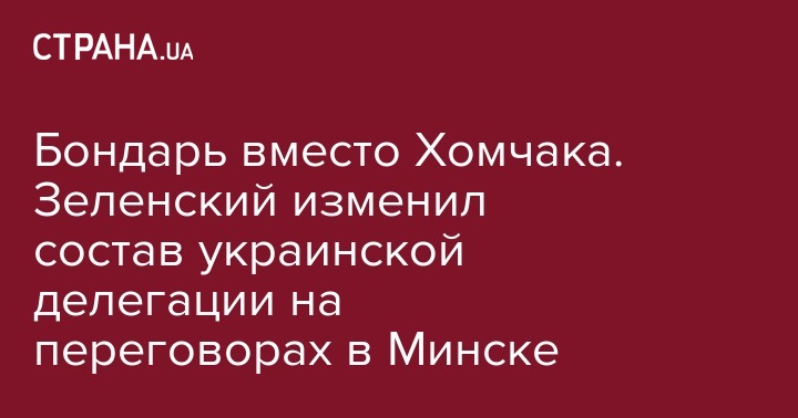 Бондарь вместо Хомчака. Зеленский изменил состав украинской делегации на переговорах в Минске