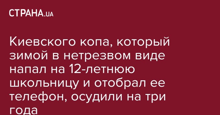 Киевского копа, который зимой в нетрезвом виде напал на 12-летнюю школьницу и отобрал ее телефон, осудили на три года
