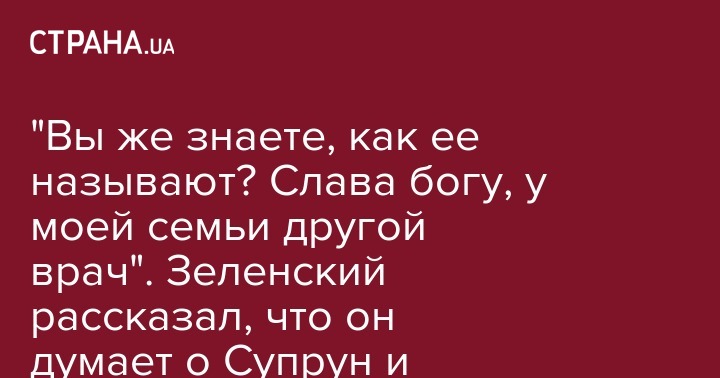 "Вы же знаете, как ее называют? Слава богу, у моей семьи другой врач". Зеленский рассказал, что он думает о Супрун и других министрах