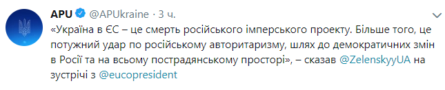 Президент Владимир Зеленский во время встречи с главой Европейского совета Дональдом Туском в Брюсселе заявил, что после вступления Украины в ЕС Россия похоронит свои имперские амбиции и поспособствует демократизации РФ и других стран постсоветского пространства.