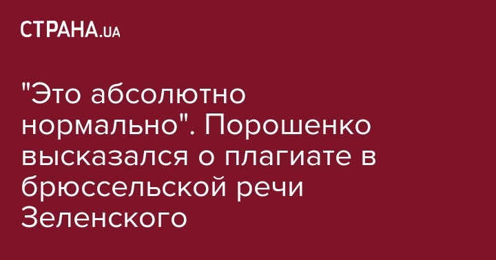 "Это абсолютно нормально". Порошенко высказался о плагиате в брюссельской речи Зеленского