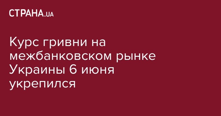 В четверг, 6 июня курс гривни на межбанковском валютном рынке укрепился до 26,69 грн/$1 с 26,9 грн/$1 в предыдущий рабочий день. Об этом сообщили агентству "Интерфакс-Украина" дилеры коммерческих банков.