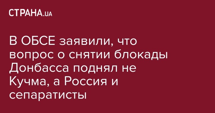 В ОБСЕ заявили, что вопрос о снятии блокады Донбасса поднял не Кучма, а Россия и сепаратисты