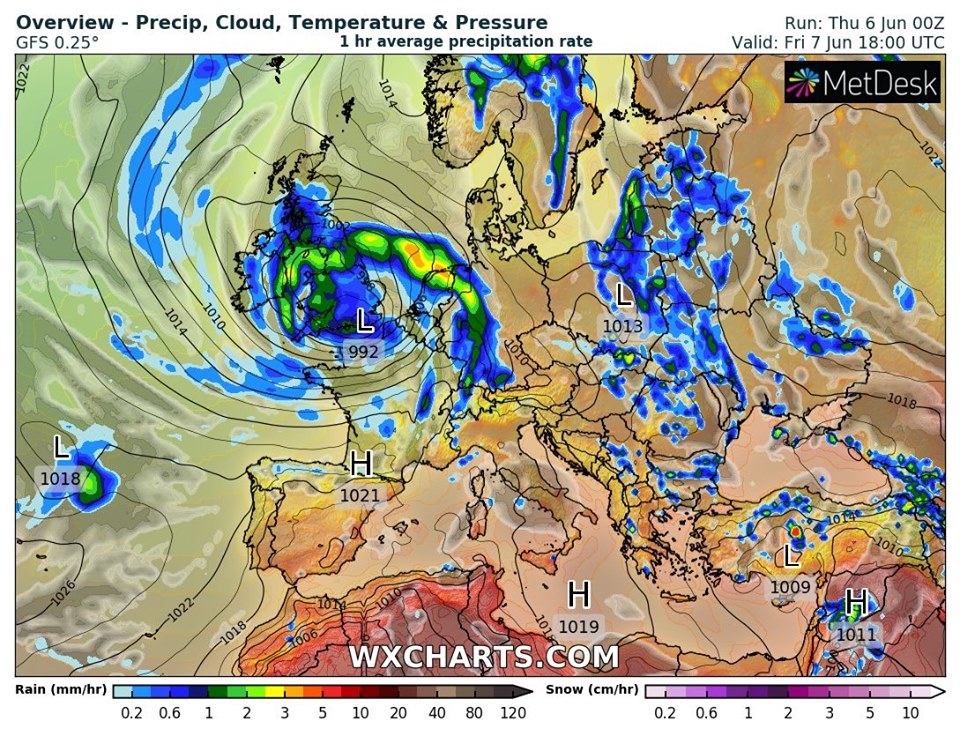 "Дожди с грозами 7 июня наиболее вероятные в западных областях, местами в Одесской и Николаевской, а вечером в пятницу пройдут на Харьковщине и Сумщине. Ближайшей ночью могут дожди с грозами походить по Северу и Центру. На остальной территории - без осадков. Температура воздуха в Украине завтра ожидается + 25 + 30 градусов. А в выходные жара усилится до + 28 + 34 градусов", - предупреждает синоптик.