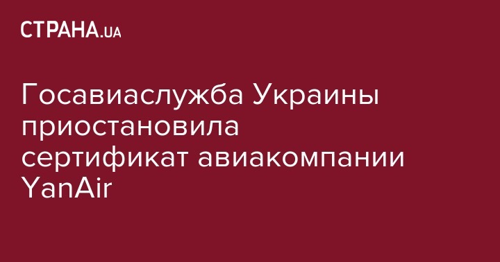 "Информируем наших пассажиров что на время проверки авиакомпании YanAir, Госавиаслужба Украины приняла решение о приостановке сертификата эксплуатанта. Мы ожидаем возобновление действия сертификата в самое ближайшее время и спешим заверить выполнение всех рейсов самолетами наших партнеров на период указанной приостановки", - говорится в сообщении, опубликованном на странице авиакомпании в соцсети Фейсбук.
