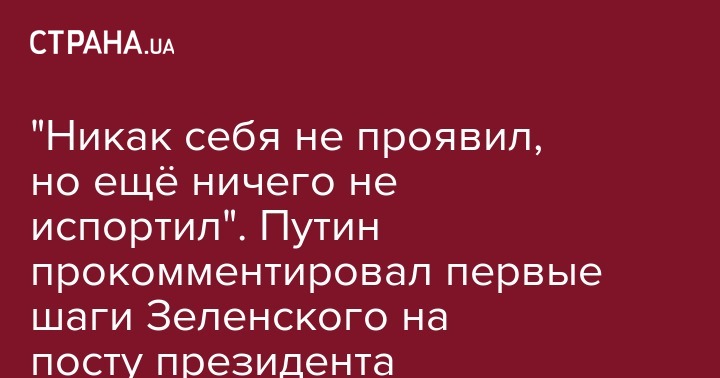 По мнению Путина, Зеленский пока себя никак не проявил, но и "еще ничего не испортил своими заявлениями".