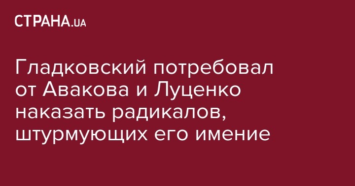 Гладковский потребовал от Авакова и Луценко наказать радикалов, штурмующих его имение