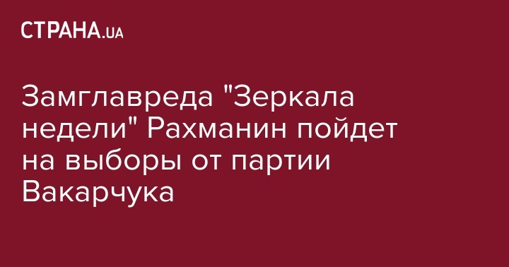 На выборах в Верховную Раду от партии Вакарчука "Голос" будет баллотироваться заместитель главного редактора еженедельника "Зеркало недели. Украина" Сергей Рахманин. Об этом сообщает пресс-служба политсилы.