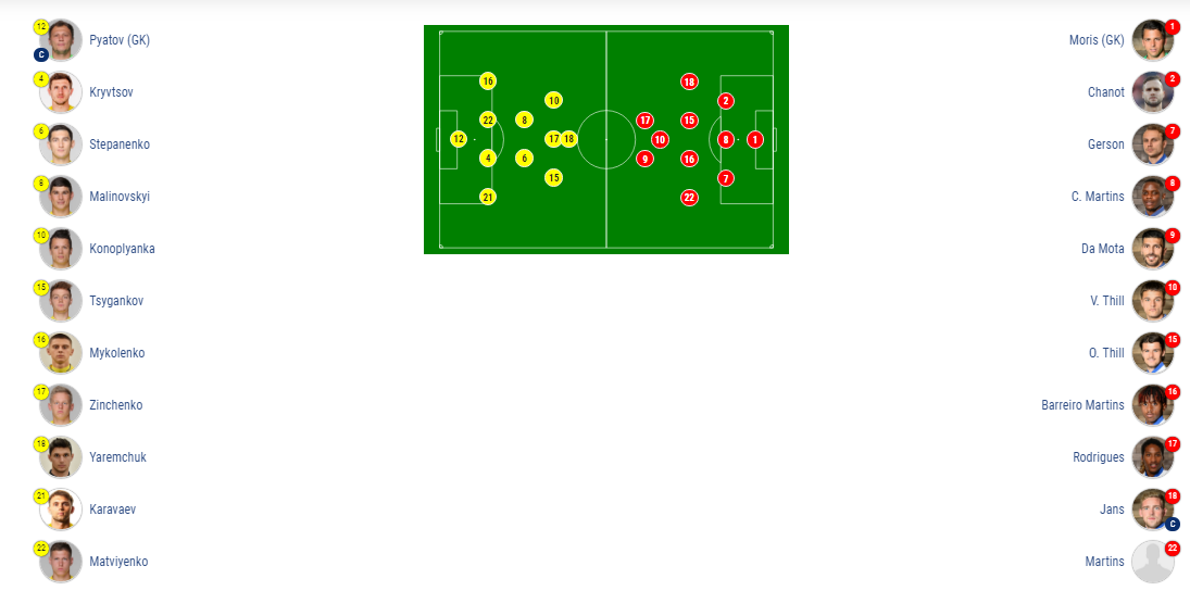 В резерве Андрея Шевченко: Панькив, Лунин, Шепелев, Соболь, Бурда, Шапаренко, Кравец, Марлос, Пластун, Швед, Безус, Коваленко.