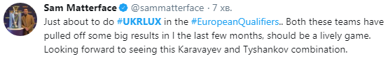 Жерсон Родригес, автор автогола в первом матче против Украины, сказал, что у команды хороший настрой и она собирается навязать борьбу украинцам. В целом Люксембург подходит к матчу во Львове в хорошей форме.