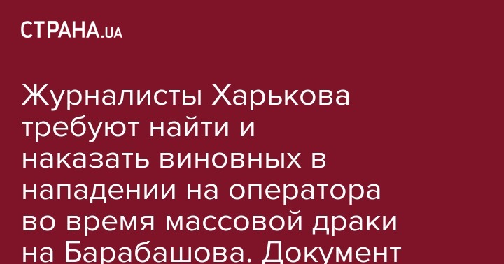 Журналисты Харькова требуют найти и наказать виновных в нападении на оператора во время массовой драки на Барабашова. Документ
