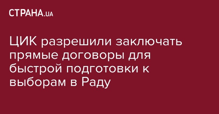 Согласно этому, ЦИК имеет возможность вместо проведения долговременных открытых торгов, которые могут завершится уже после 21 июля, оперативно заключить необходимые договоры и обнародовать информацию о них в системе закупок ProZorro.