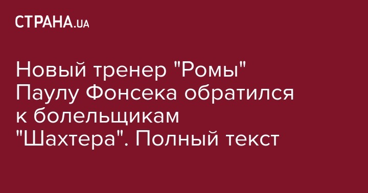 Наставник "Шахтера" Паулу Фонсека обратился ко всем болельщикам клуба перед переходом в "Рому". Его цитирует пресс-служба "горняков".