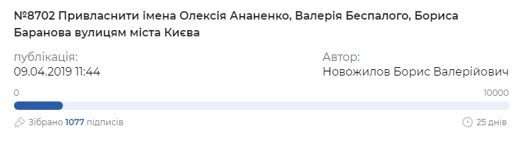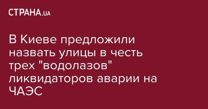 На сайте городского совета Киева опубликована петиция о присвоении улицам столицы Украины имен героев-ликвидаторов аварии на ЧАЭС - Алексея Ананенко, Валерия Беспалого, Бориса Баранова. Они предотвратили повторный взрыв и еще большую катастрофу.