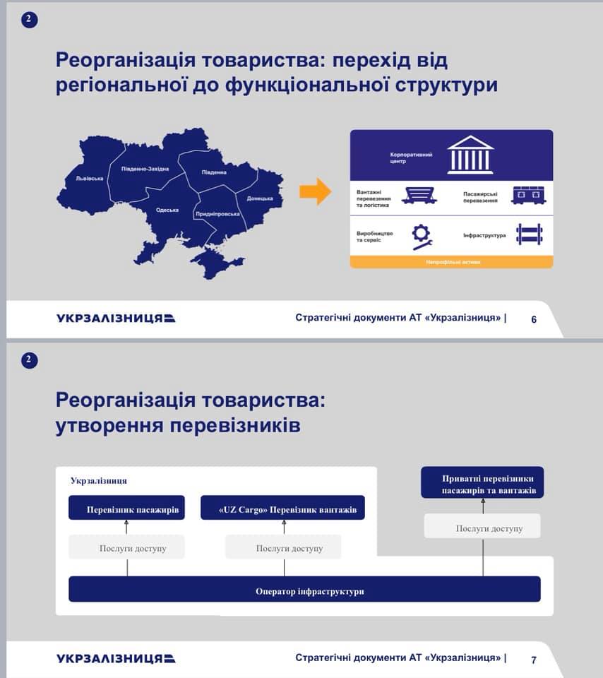 В структуре УЗ будет функционировать пассажирская компания, а также грузоперевозчик UZ Cargo. Ожидается появление частных перевозчиков грузов и пассажиров.
