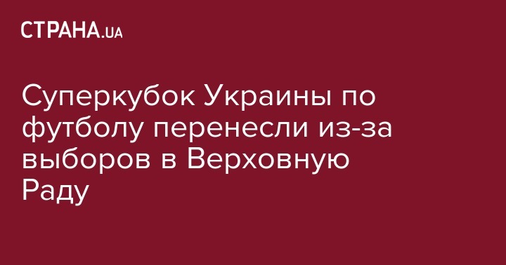 Перенесенная из-за совпадения с парламентскими выборами игра за Суперкубок Украины-2019, в котором встретятся чемпион и обладатель Кубка Украины "Шахтер" и серебряный призер УПЛ "Динамо".