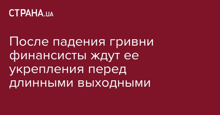 После падения гривни финансисты ждут ее укрепления перед длинными выходными