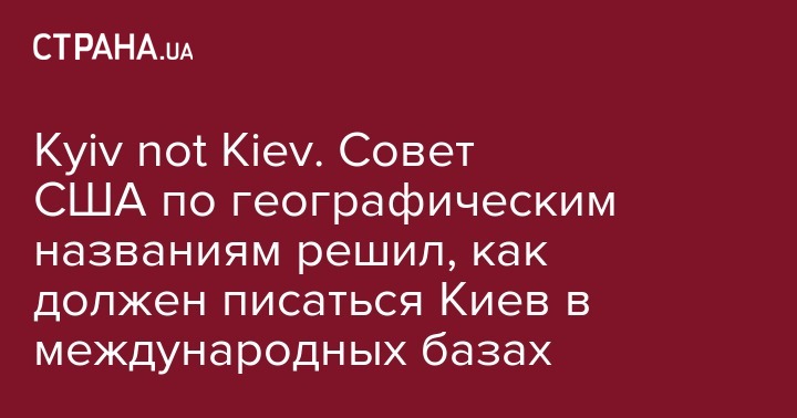 Kyiv not Kiev. Совет США по географическим названиям решил, как должен писаться Киев в международных базах