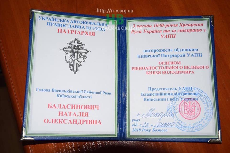 Наталья Баласинович имеет награды от Украинской автокефальной церкви, которая позже перешла в ПЦУ.