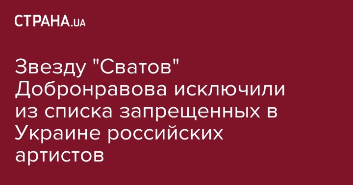 В Министерстве культуры пояснили, что актер исключен из перечня согласно решению суда, которым Добронравову отменили запрет на въезд в Украину и разрешили вновь ретрансляцию фильмов с его участием, пишет "Украинская правда".