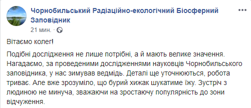 Скриншот: Facebook/Чорнобильський Радіаційно-екологічний Біосферний Заповідник