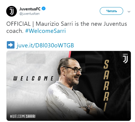 Ранее стало известно, что "Ювентус" заплатит за тренера компенсацию в размере пяти миллионов фунтов.