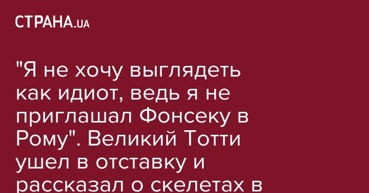 "Я не хочу выглядеть как идиот, ведь я не приглашал Фонсеку в Рому". Великий Тотти ушел в отставку и рассказал о скелетах в шкафу