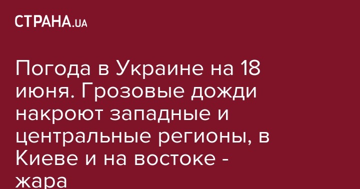 Погода в Украине на 18 июня. Грозовые дожди накроют западные и центральные регионы, в Киеве и на востоке - жара
