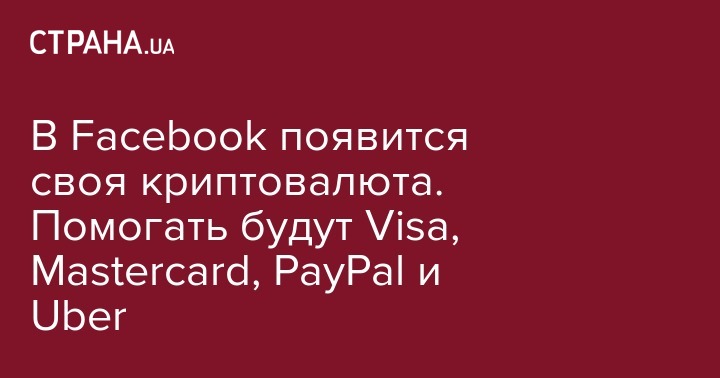 В Facebook появится своя криптовалюта. Помогать будут Visa, Mastercard, PayPal и Uber