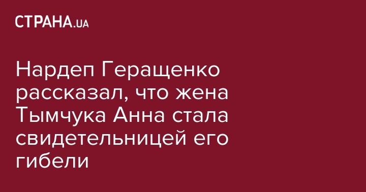 Нардеп Геращенко рассказал, что жена Тымчука Анна стала свидетельницей его гибели