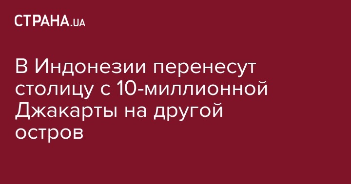 Власти Индонезии озвучили планы о переносе столицы с острова Ява на Калимантан. Переезд государственных учреждений и организаций из 10-миллионной Джакарты запланирован на 2024 год.
