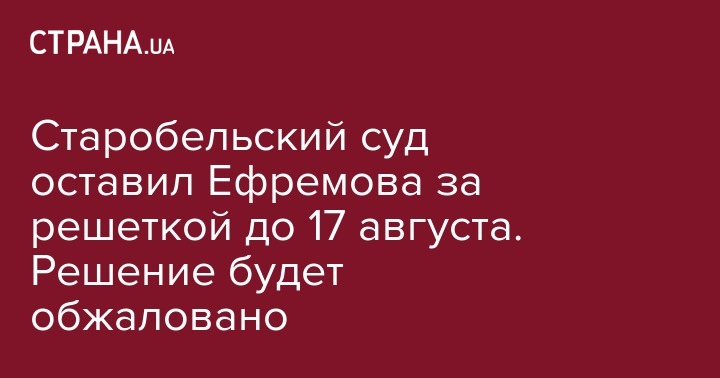 "Старобельским районным судом Луганской области продлена мера пресечения (содержание под стражей) обвиняемому Ефремову еще на два месяца – до 17.08.2019 включительно", - говорится в сообщении.