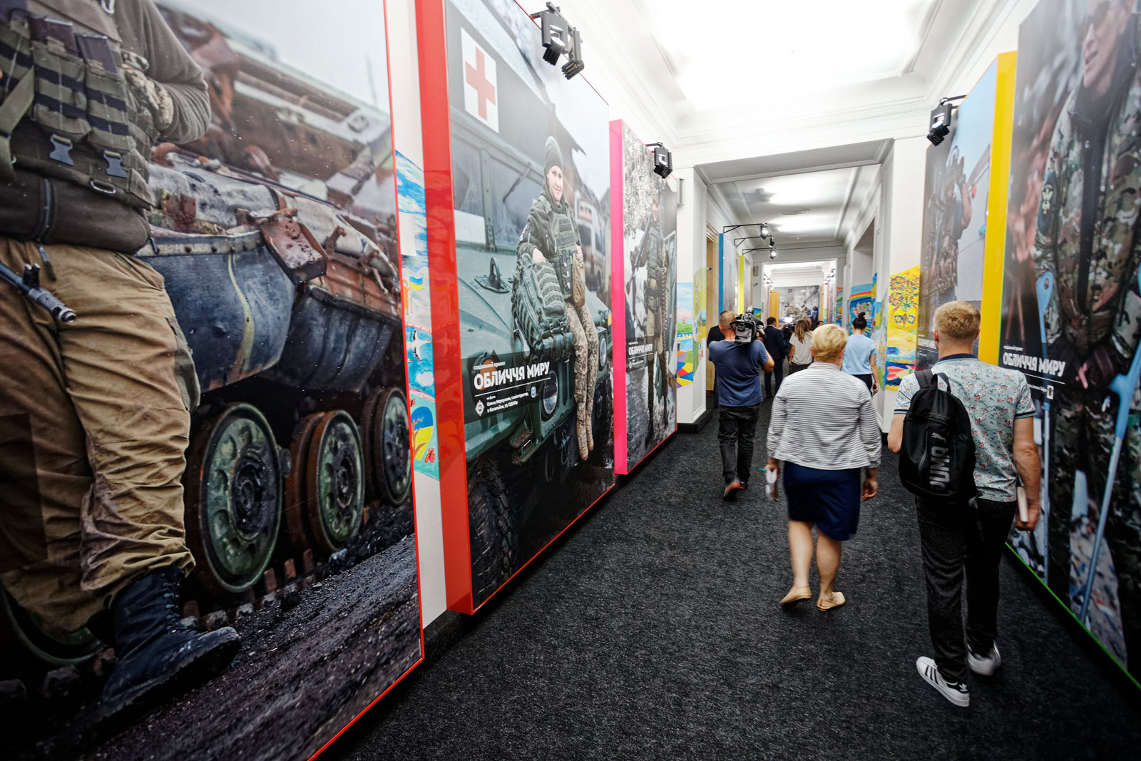 На втором этаже также расположен большой кабинет главы Администрации президента Андрея Богдана. В коридоре на пути к его кабинету на стенах висят фотографии украинских военных.