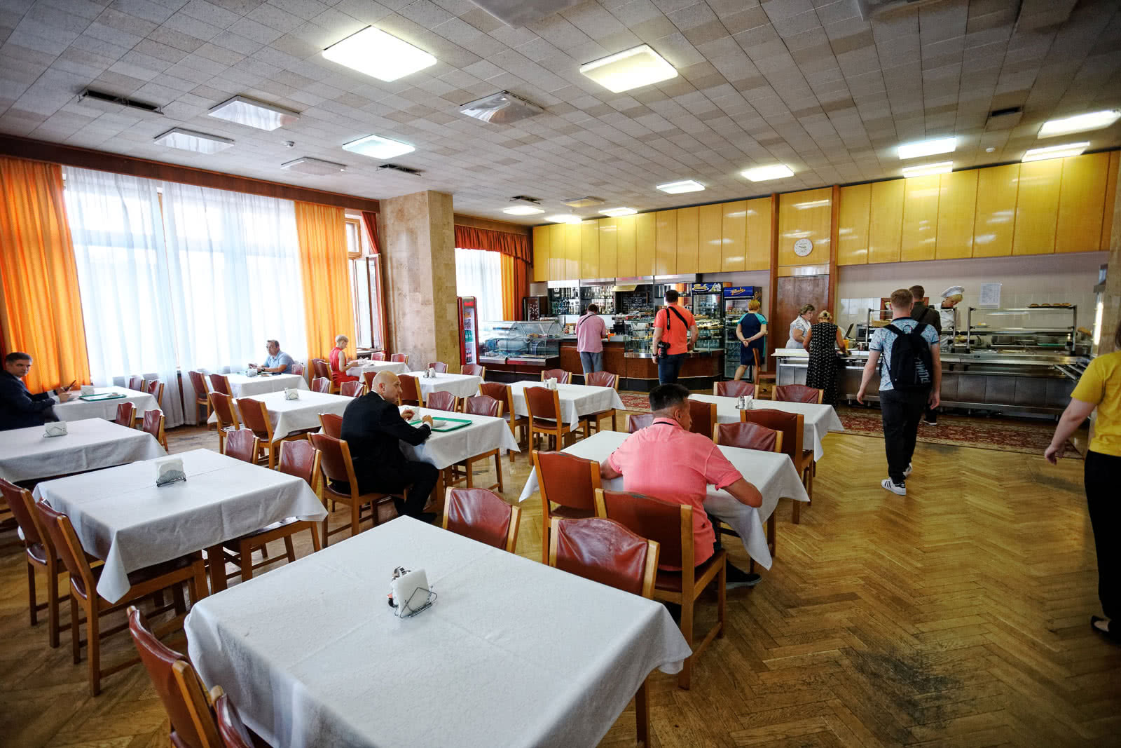 Экскурсия завершается в столовой администрации. ЕНа закуску здесь подают салаты из помидоров, огурцов, тунца, авокадо. Цены - весьма умеренные. По словам работниц столовой, президент сюда не приходит.