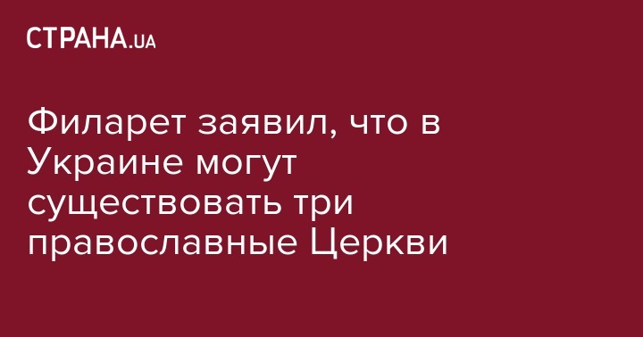 Почетный патриарх ПЦУ Филарет (Денисенко) допускает существование в Украине трех православных Церквей. Об этом пишет "Интерфакс-Украина".