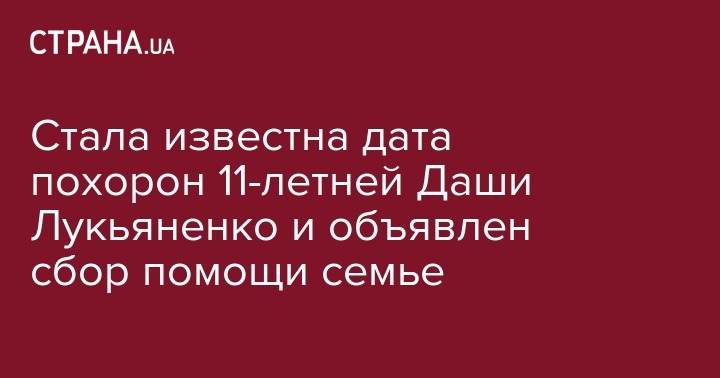 В пятницу, 21 июня, состоятся похороны убитой 11-летней Даши Лукьяненко. Траурная церемония пройдет в Ивановке в 12.00. Об этом накануне сообщается в инстаграм-истории ее сестры Марины. Также объявлен сбор помощи небогатой семье на организацию похорон.