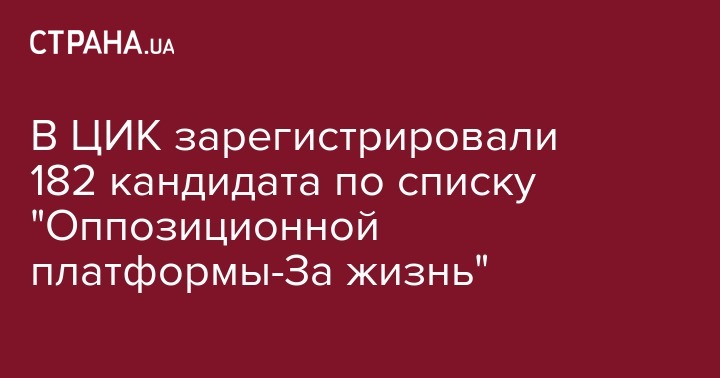 Также во время заседания Комиссия зарегистрировала 182 кандидатов в народные депутаты, включенных в избирательный список "Оппозиционной платформы-За жизнь", в общегосударственном многомандатном избирательном округе.