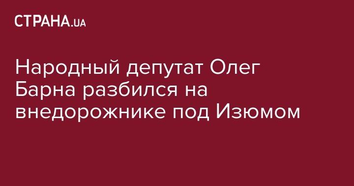 Народный депутат Олег Барна (БПП) попал в аварию под Харьковом на элитном внедорожнике. Об этом нардеп написал на своей странице в Facebook.