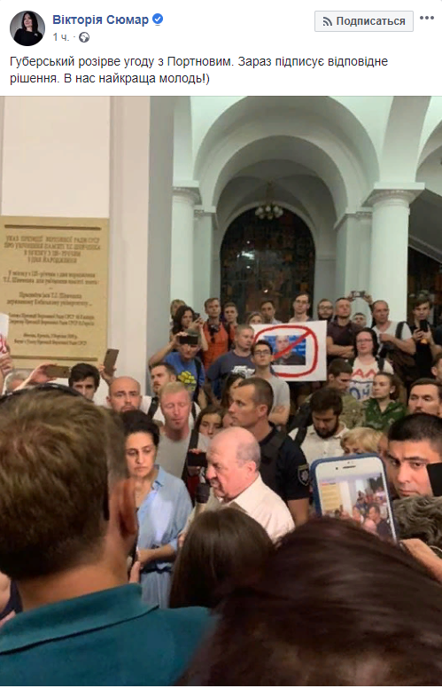 "Губерский разорвет соглашение с Портновым. Сейчас подписывает соответствующее решение. У нас лучшая молодежь!", - пишет она.
