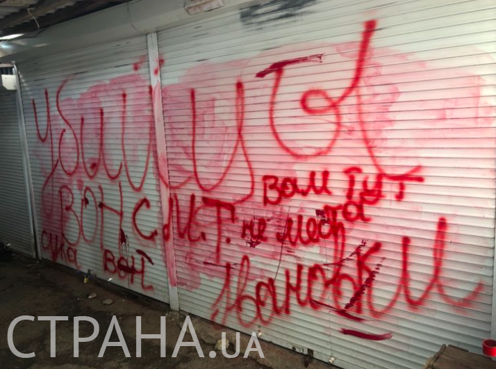 12:00 Как сообщает наш корреспондент с места событий, сегодня утром мать подозреваемого пришла на рынок, чтобы открыть точку, начала вытирать очистителем надписи, частично справилась с задачей. Люди начали возмущаться, что воняет очистителем и снова нарисовали надписи.